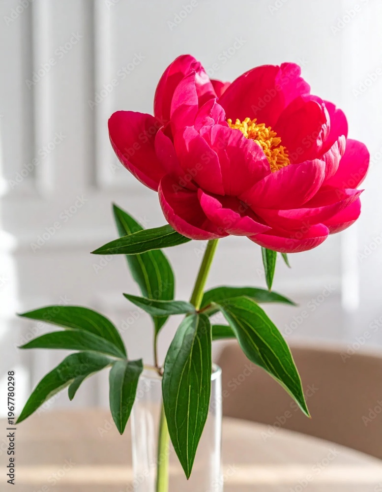 Vibrant Red Peony Flower in Clear Vase. #1967780298
