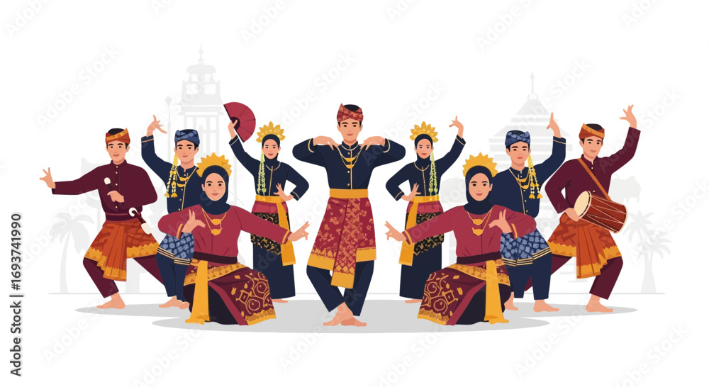 Vibrant Southeast Asian Traditional Dance Group Performing in Elaborate Cultural Attire #1693741990