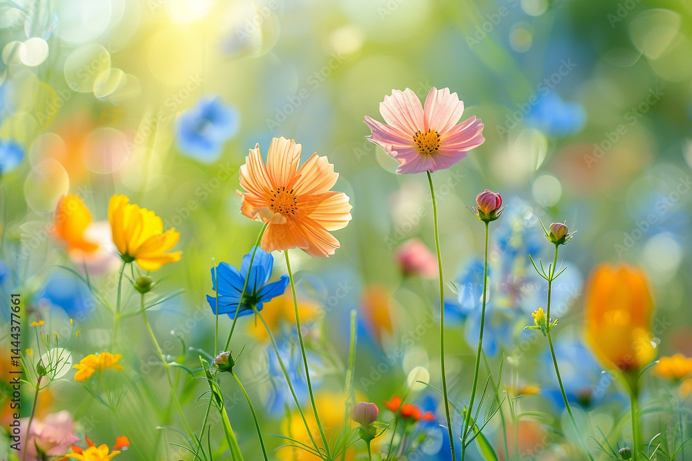 Vibrant summer meadow bursting with colorful blossoms and abundant life under the warm sun, creating a picturesque and lively scene of natural beauty #1444377661