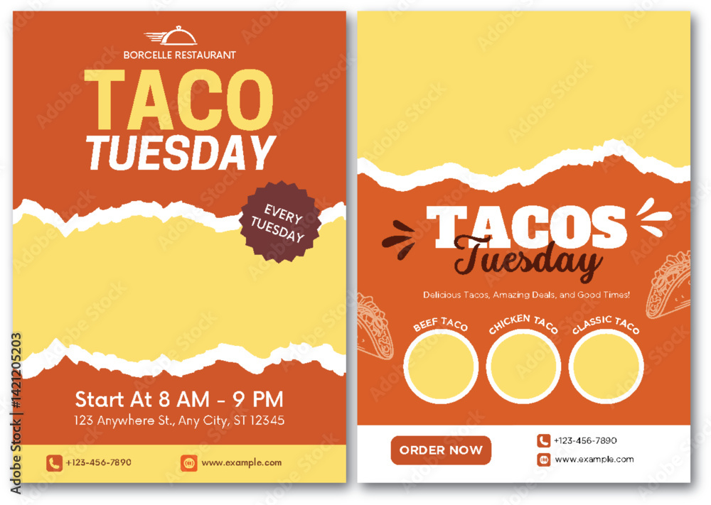 Vibrant Taco Tuesday Promotion Flyer with Ripped Paper Style Design Elements #1421205203