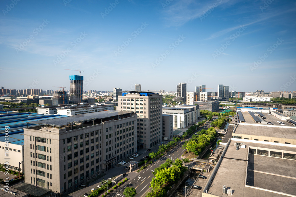 Vibrant Urban Landscape: Aerial View of Modern Industrial City and Skyline #1714400081