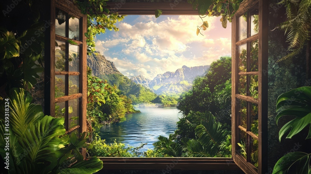 View from window at a wonderful beautiful landscape nature panorama #1639318324