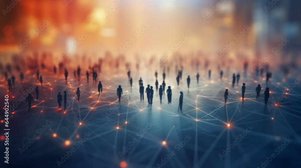 View of a crowd with a network of connections. Big data, smart city, wifi concept. #644902540