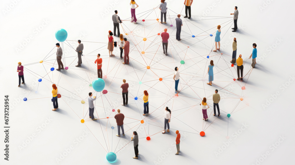 View of a crowd with a network of connections. Big data, smart city, wifi concept. #673725954