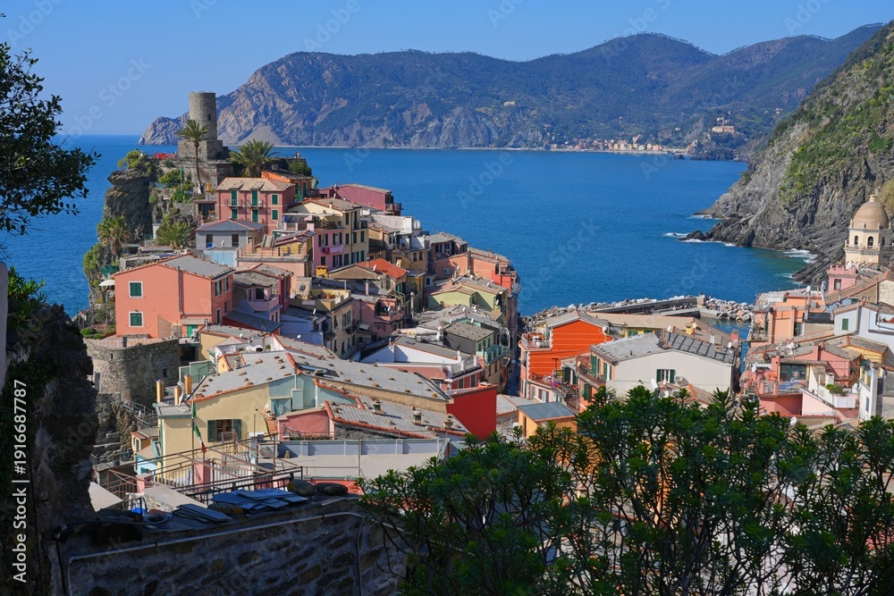 View of the picturesque coastal village of Vernazza in Cinque Terre on the Ligurian Coast in Italy #1916687787