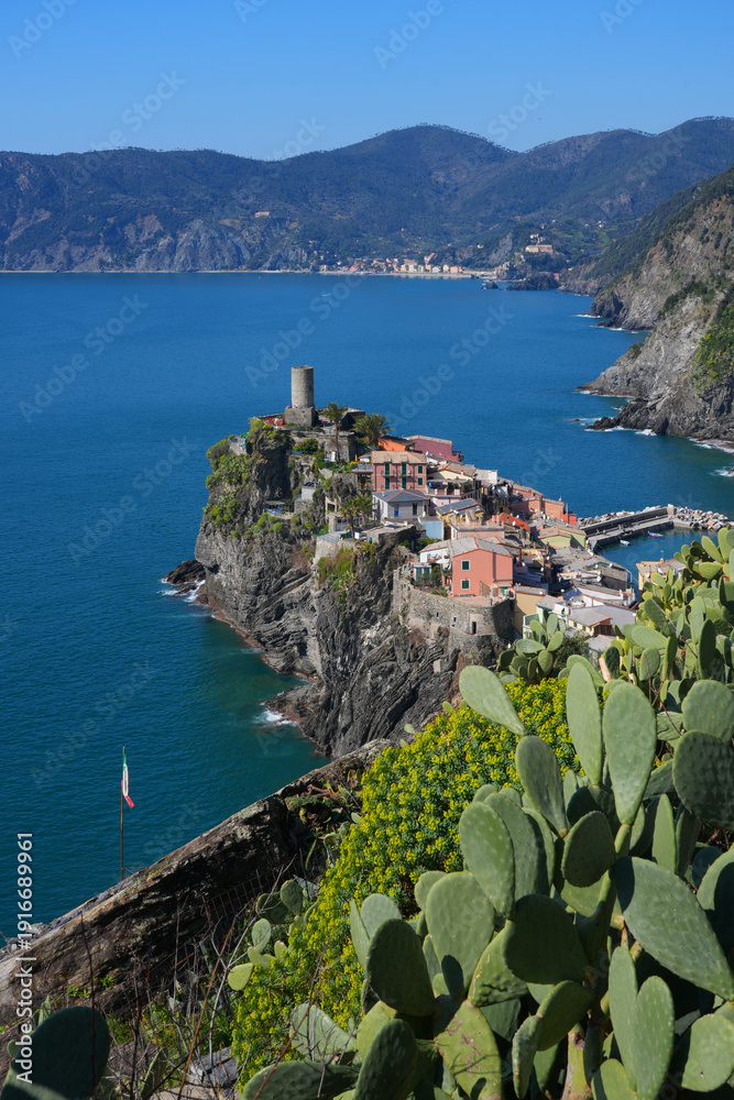 View of the picturesque coastal village of Vernazza in Cinque Terre on the Ligurian Coast in Italy #1916689961
