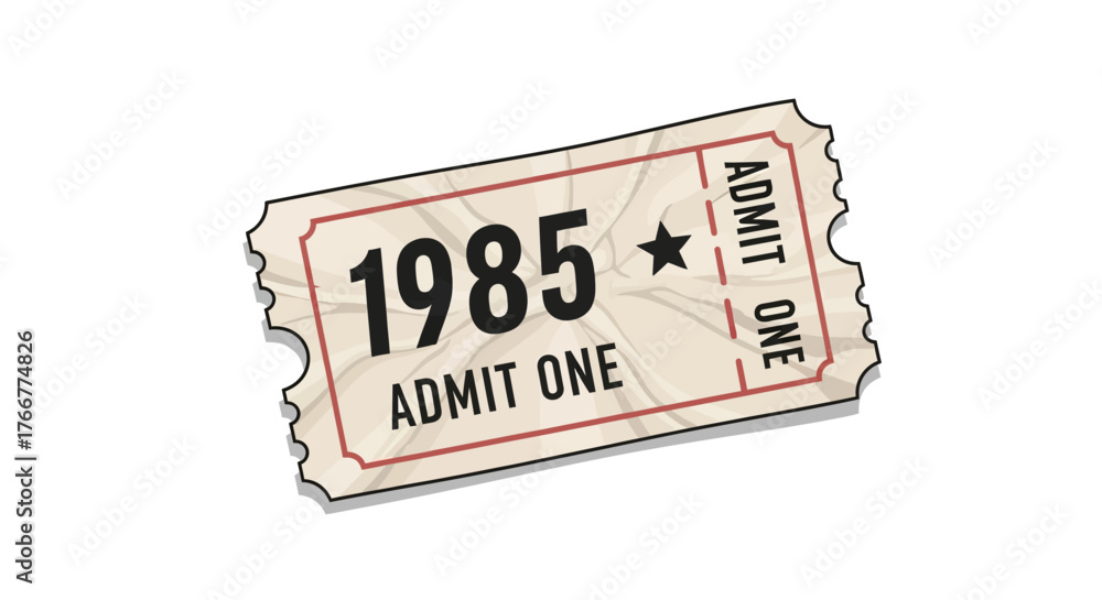 Vintage admit one ticket with the year 1985 printed on it, isolated on #1766774826