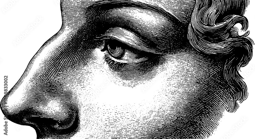 Vintage anatomical sketch of nose and lips - detailed botanical engraving for design #1888833002
