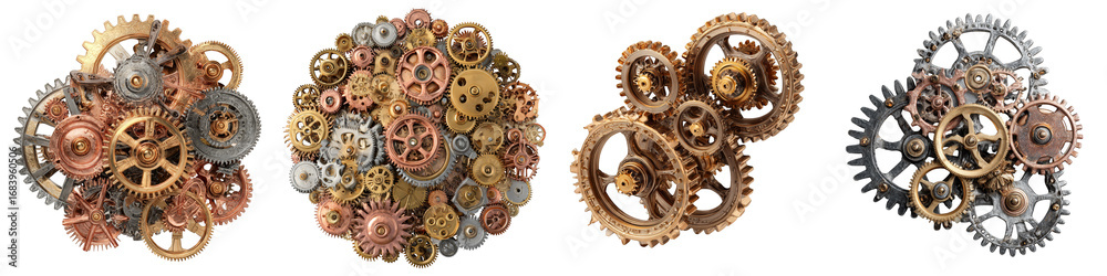 Vintage metal gears collection intricate steampunk design on transparent background #1683960506