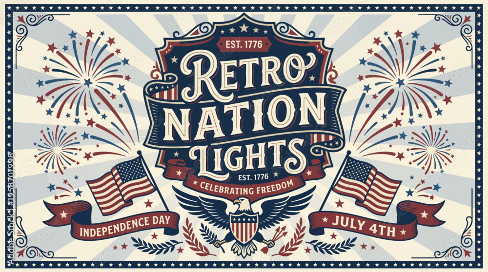 vintage patriotic poster celebrating independence day with retro style and patriotic symbols #1958701998