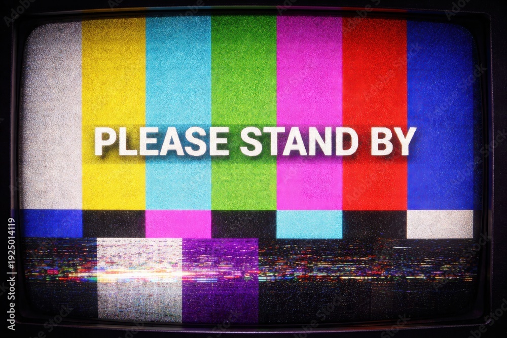 Vintage television screen test pattern with please stand by message and static noise #1925014119