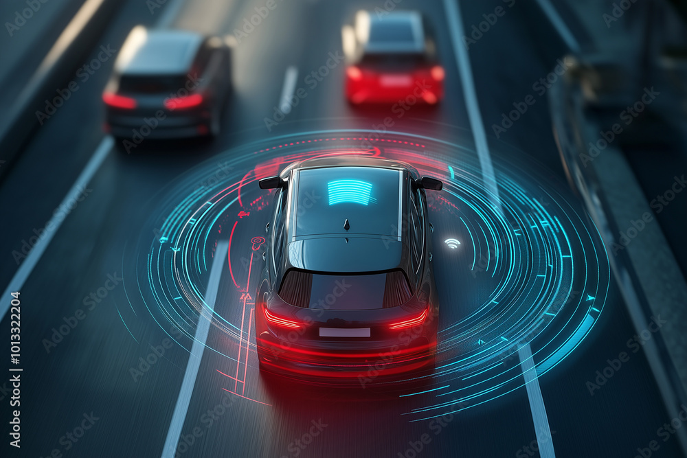Virtual Illustration of Autonomous Electric Vehicle with Intelligent Driving Elements #1013322204