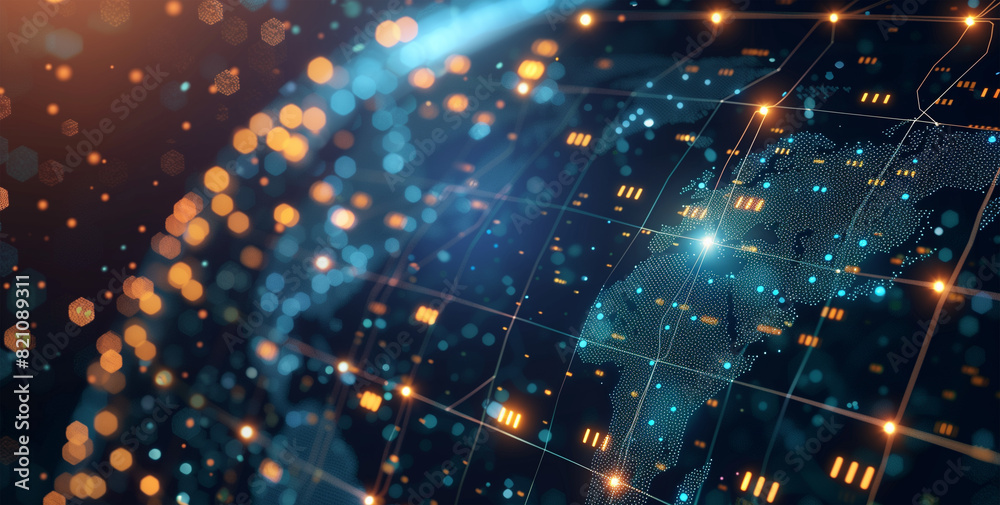 Visualization of a decentralized blockchain network overlaying a digital Earth, symbolizing secure global transactions #821089311
