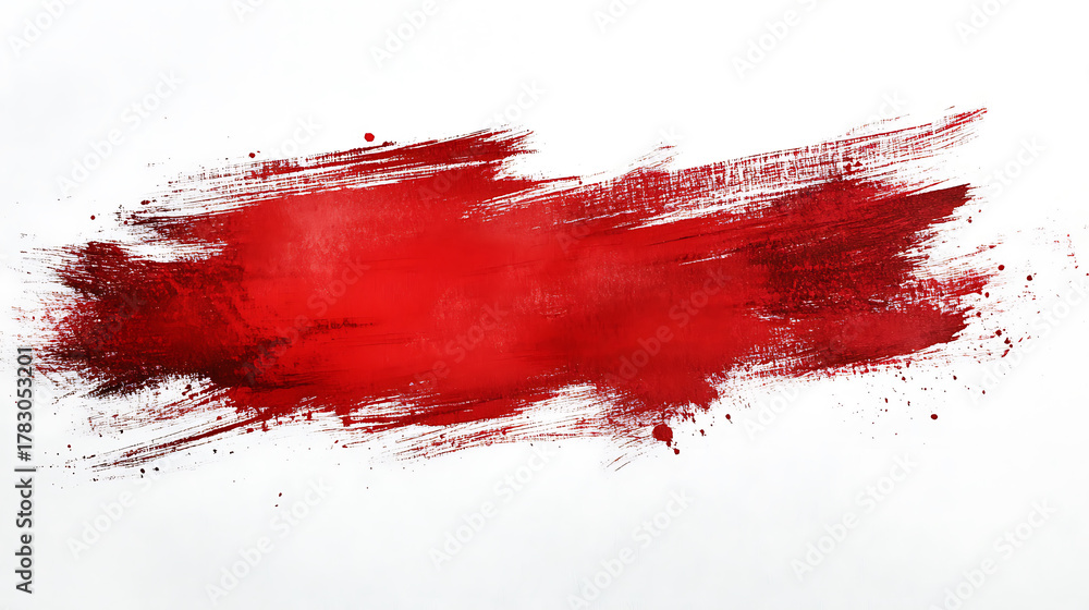 Vivid red paintbrush stroke against white background creates an abstract artistic design element for various creative projects and artistic purposes #1783053201