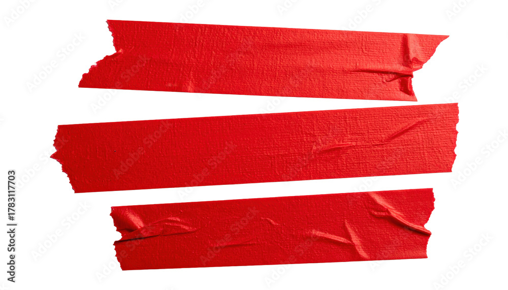 Vivid Strips: A close-up shot of three strips of vibrant, red tape, showcasing their texture and strong adhesive. #1783117703