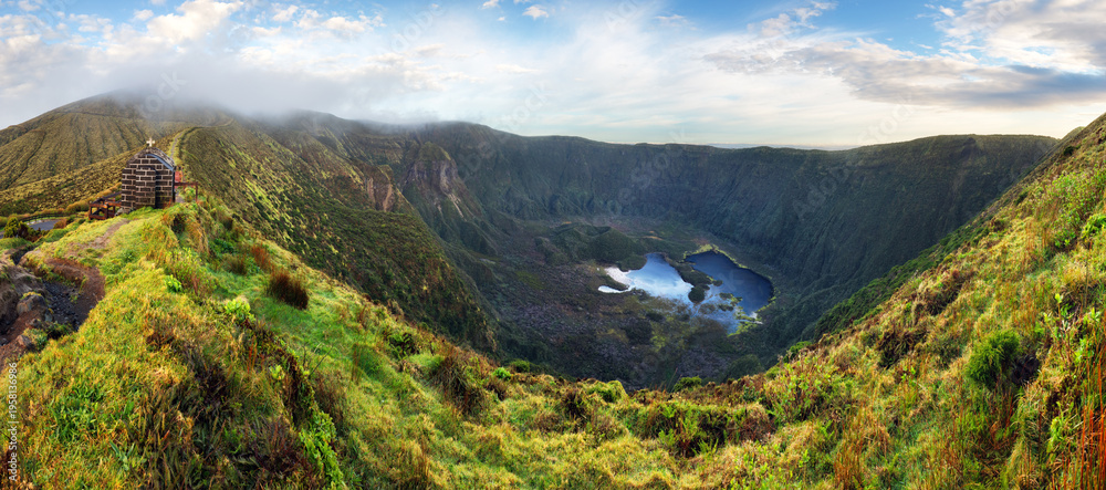 Volcano landscape - Panorama of crater caldeira in Faial island - Azores, Portugal #1958136986