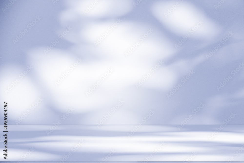 Wall interior background, studio and backdrops show products.with shadow from window color white and blue background for text insertion and presentation product #1956904497