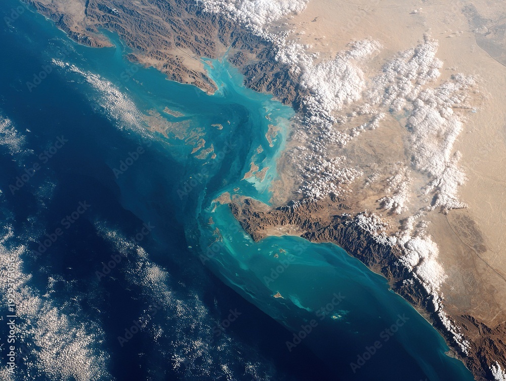 Wallpaper of the Strait of Hormuz. Narrow sea passage. Satellite-style view #1929375056