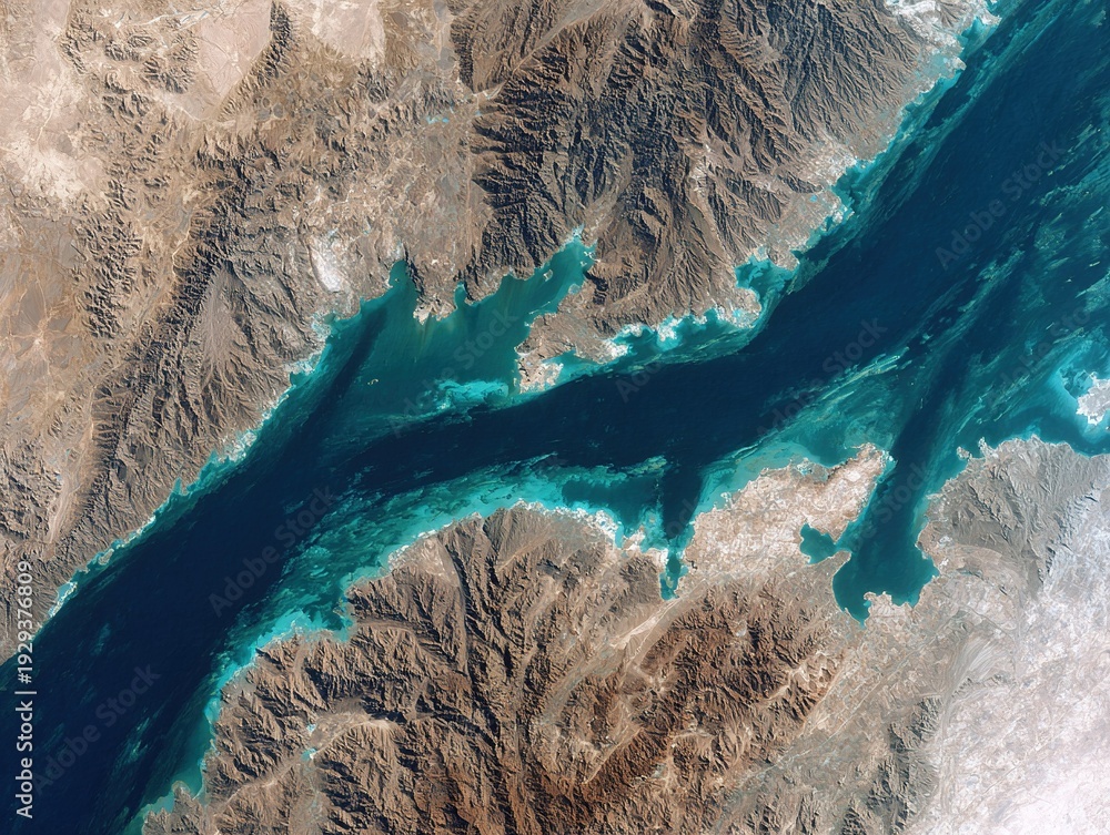 Wallpaper of the Strait of Hormuz. Narrow sea passage. Satellite-style view #1929376809