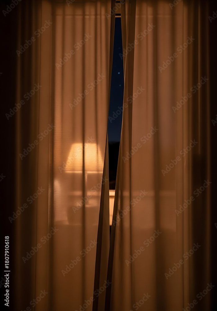 Warm Light Emitting Through Curtains on Nighttime Window Scene #1807910618