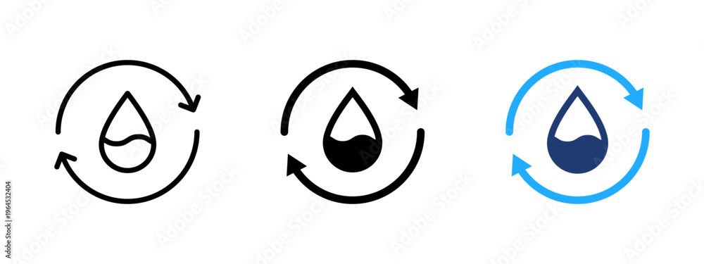 Water cycle icon with drop inside circular arrows. Recycle and reuse symbol. Hydration, liquid flow and eco-friendly sign. Circular water and fluid concept representing sustainability and conservation #1964532404