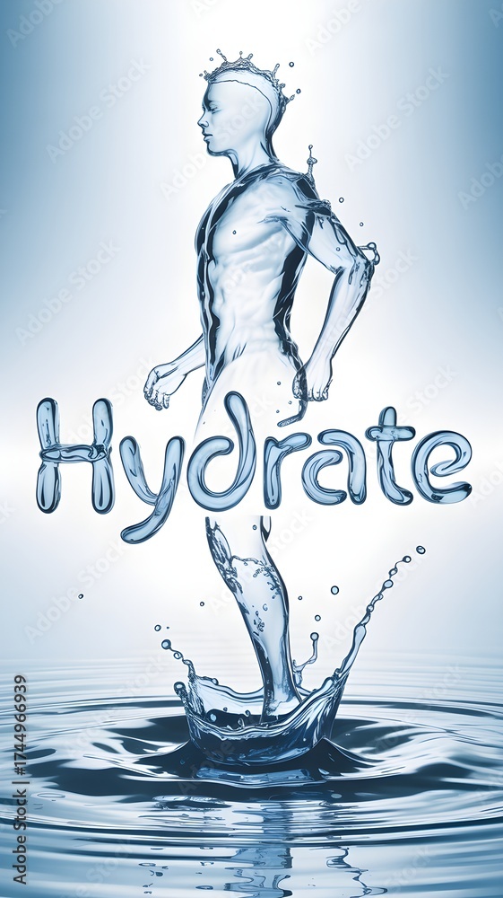 Water figure emerging from splash symbolizes hydration and vitality. #1744966939