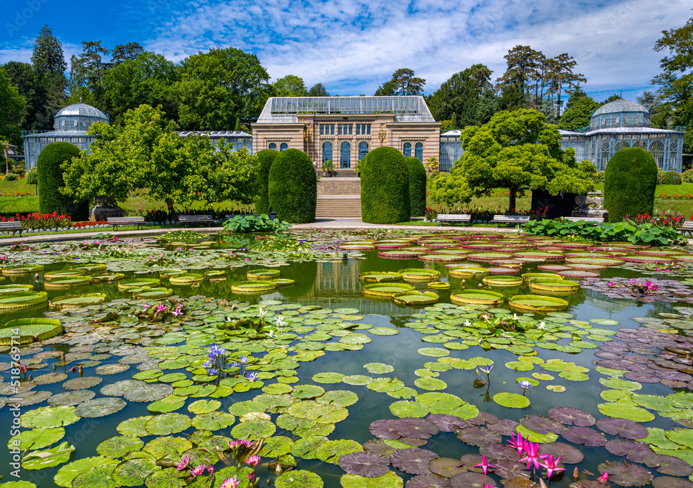 Water lily pond Wilhelma Zoological-Botanical Garden, Wilhelma, Stuttgart, Baden-Württemberg, Germany, Europe #518769714
