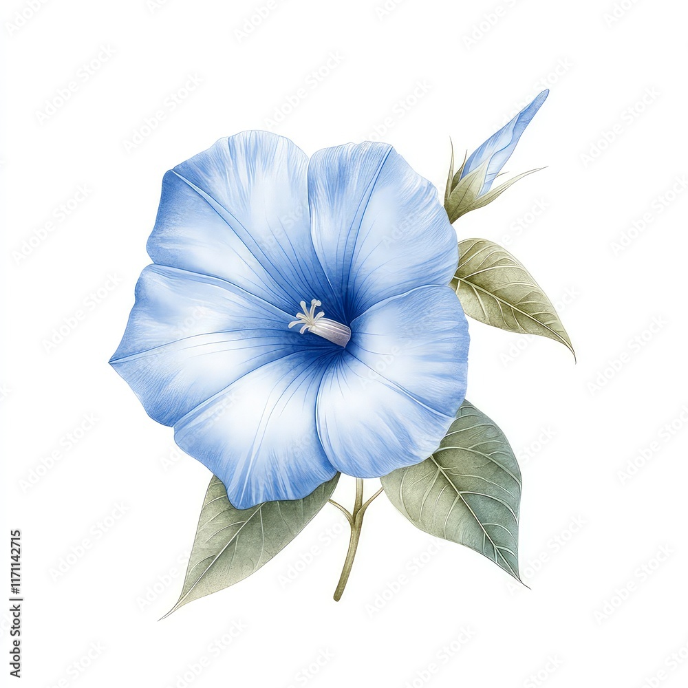 Watercolor blue morning glory bloom flower isolated on white background #1171142715