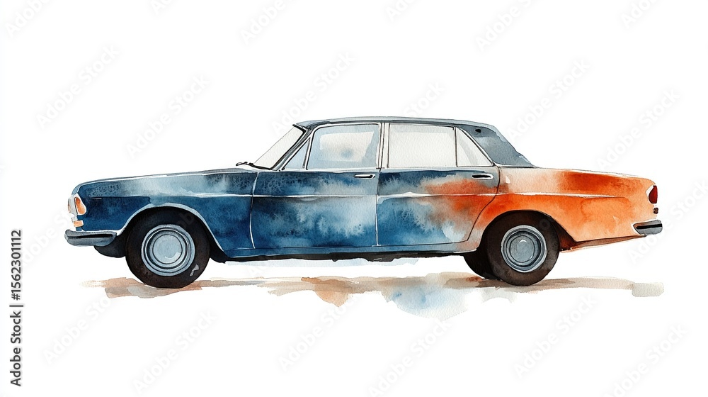 Watercolor Car PNG with Soft and Artistic Paint Effect on White Background for Unique Illustration, Art Prints, and Creative Designs #1562301112