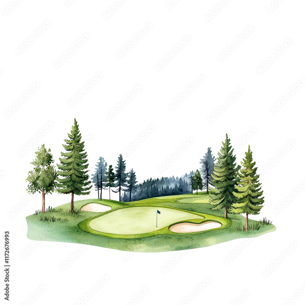 Watercolor Golf Course Illustration in Picturesque Style #1172676993