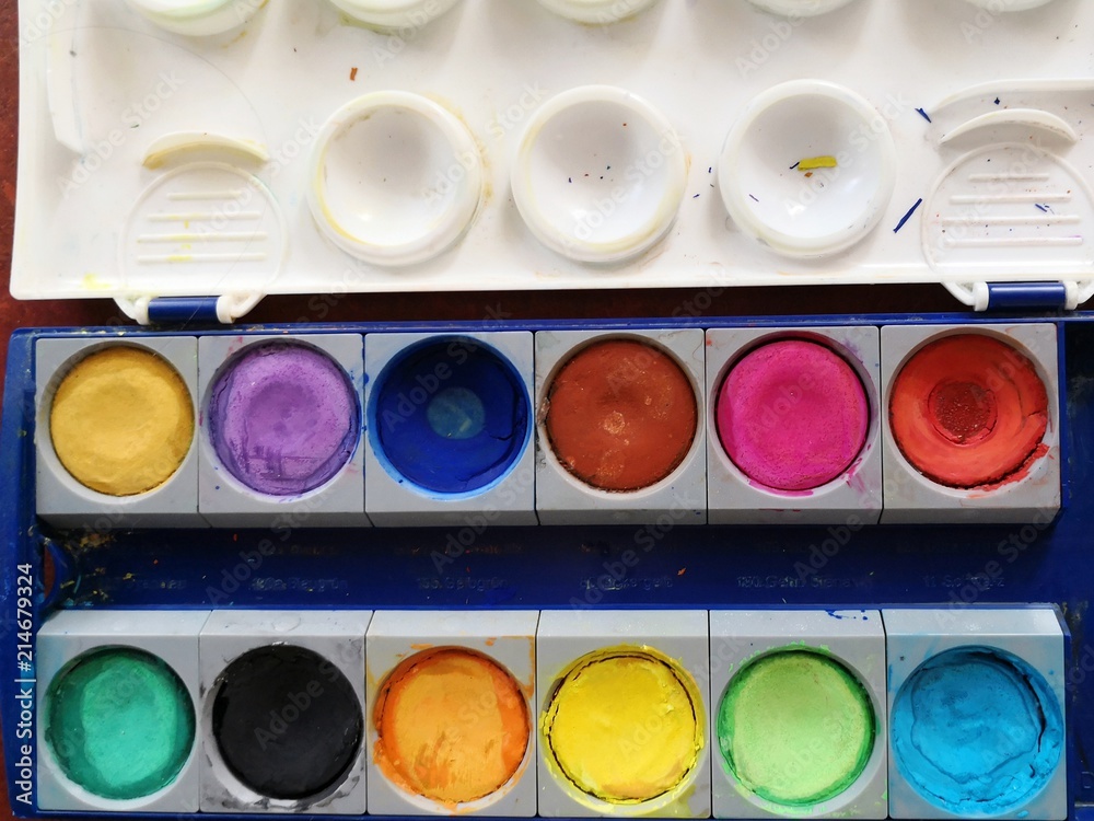 watercolor paints and brushes #214679324