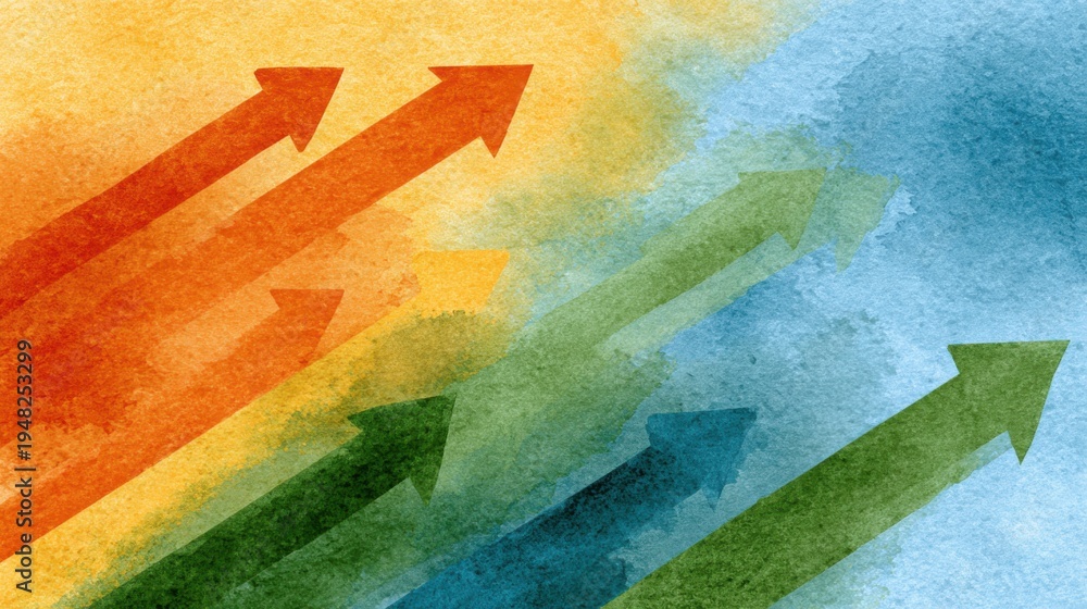 Watercolor style desk scene with flowing arrows representing professional growth and career development #1948253299