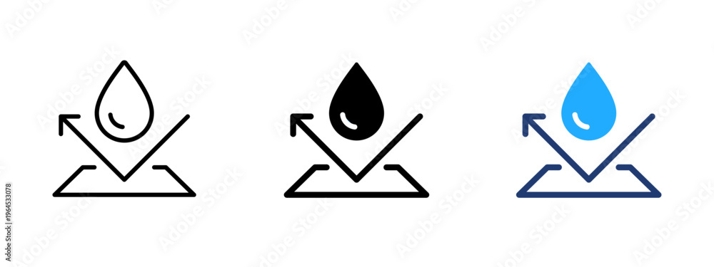 Waterproof sign icon. Protection and water-resistant symbol. Droplet, liquid and moisture sign. Shield and durable concept representing safe, wet-proof and resistant surfaces. #1964533078