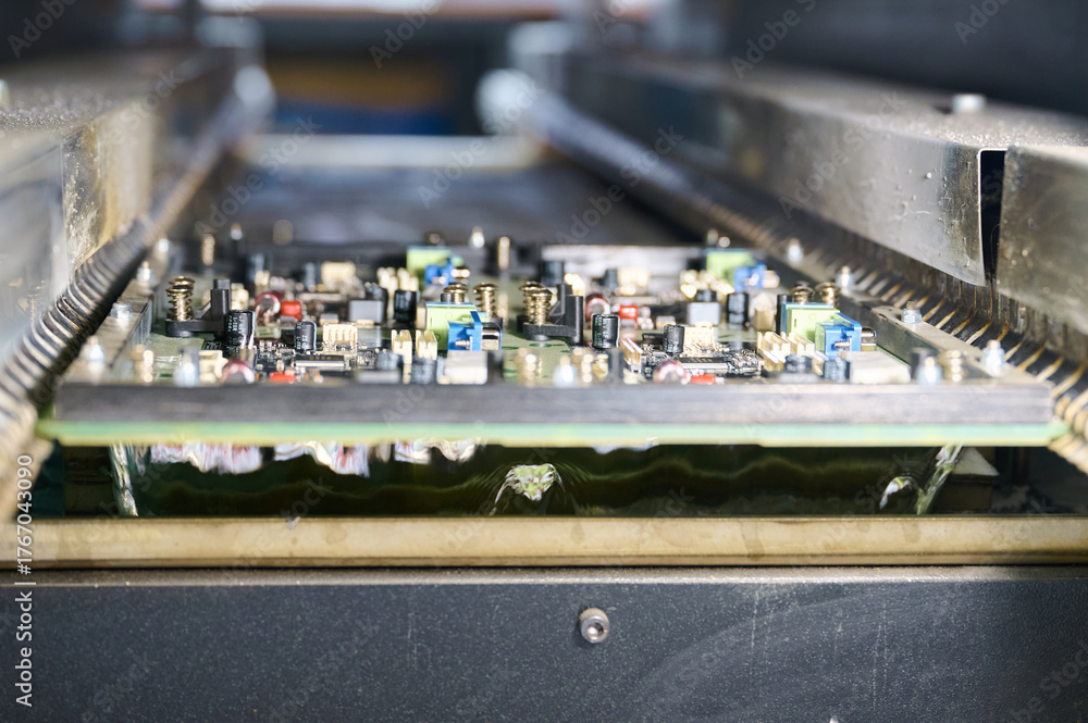 Wave soldering process for PCB tinning in a molten solder bath at a manufacturing facility #1767043090