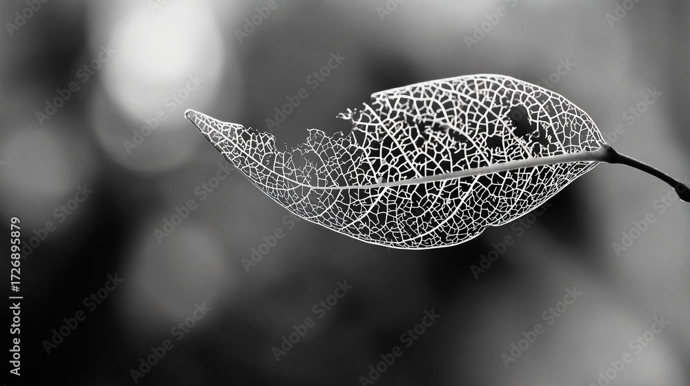 weakness. A macro photograph of a young leaf with intricate, damaged vein patterns, symbolizing hidden vulnerability. gardening catalogs. #1726895879