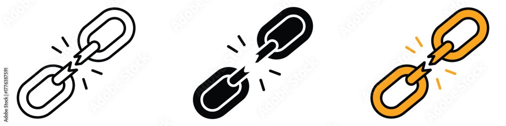 Weakness, broken chain links icon vector. failure, vulnerability, needing repair symbol. vector illustration. #1776387591