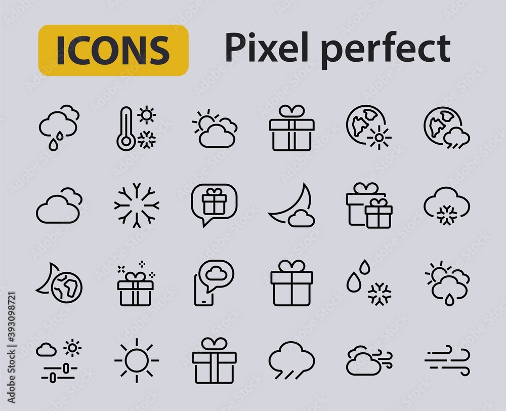 WEATHER set of icons, icons such as weather forecast and clouds, wind, rain, snow, weather settings and sunny weather and much more. Editable stroke, simple vector lines #393098721