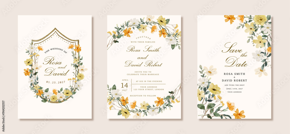 wedding invitation set with yellow white wildflower watercolor frame #1964202157