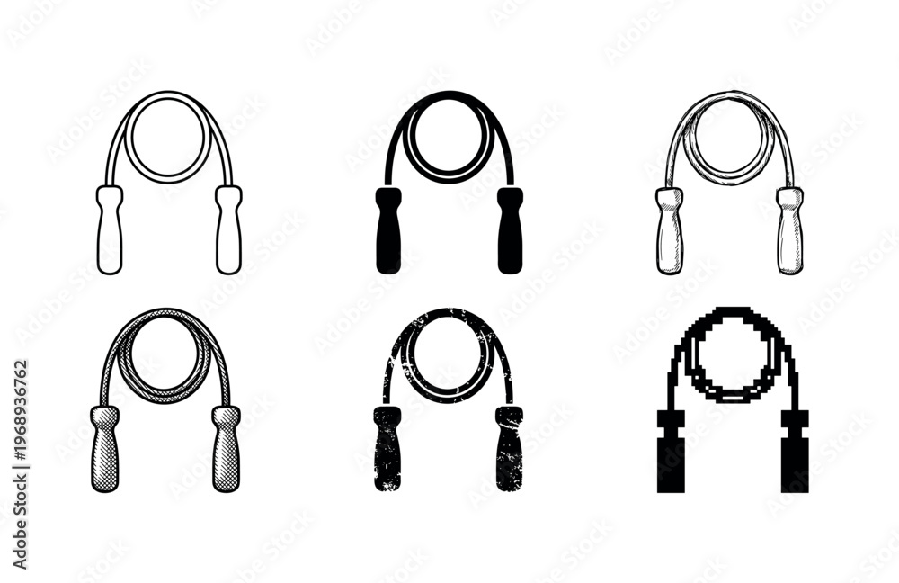 weighted jump rope, arranged as a clean Variant 1: clean thin outline, no fill, rounded joins, even #1968936762