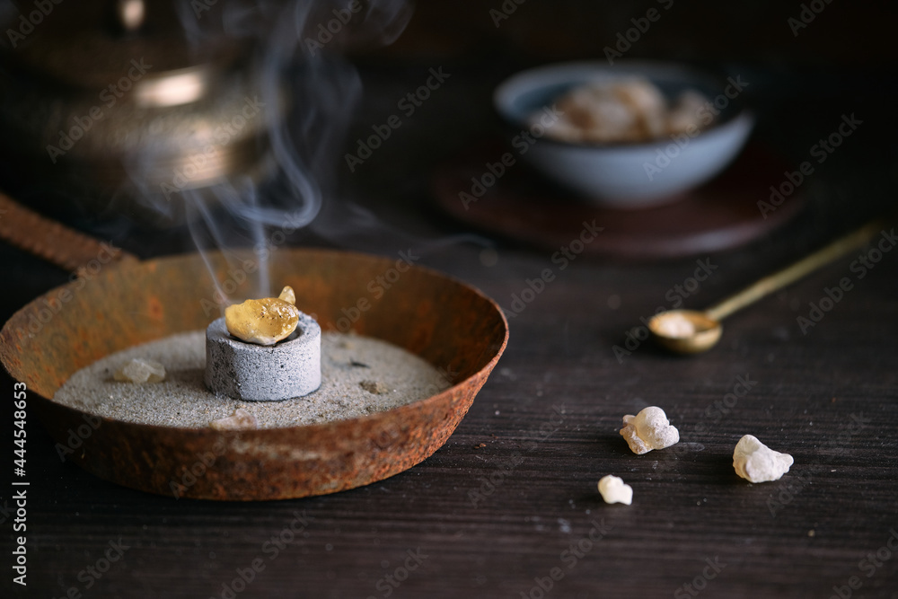 Weihrauch Harz (Olibanum) auf glühender Räucherkohle räuchern #444548653