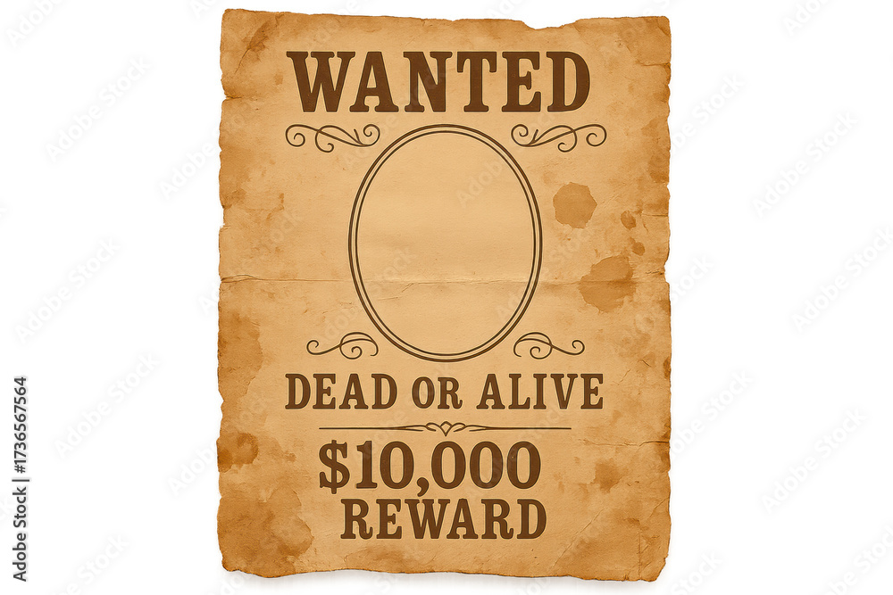 Western wanted poster bundle aged paper textures with transparent face cutout PNG set #1736567564