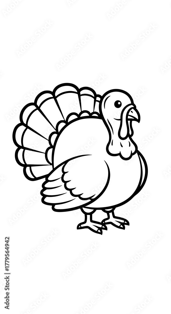 Whimsical Turkey Illustration Preparing for Thanksgiving Feast, Isolated on White Background for Holiday Greetings & Educational Materials, Festive Autumn Celebration & Farm Animal Projects, Cute Line #1779564942