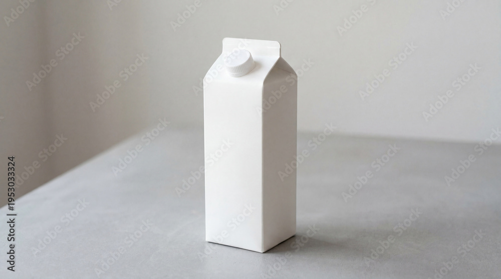 White carton sits on a gray table in a simple indoor setting during daylight hours #1953033324