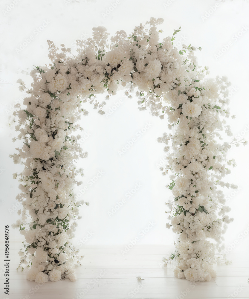 White flower arch digital backdrop. Floral fine art backgrounds. White room with arch. Maternity backgrounds. Backlit floral arch studio backdrops #1956649776