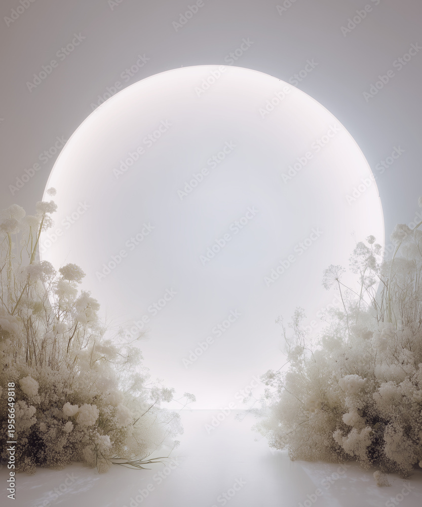 White flower arch digital backdrop. Floral fine art backgrounds. White room with arch. Maternity backgrounds. Backlit floral arch studio backdrops #1956649818