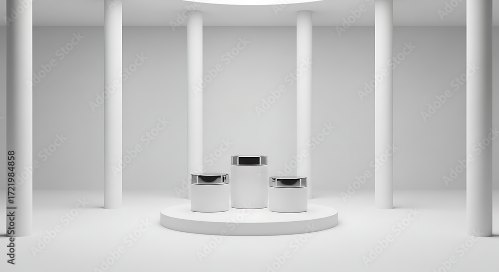White Minimalist Product Display, Cylindrical Podium, 3D Render, Clean Background #1721984858