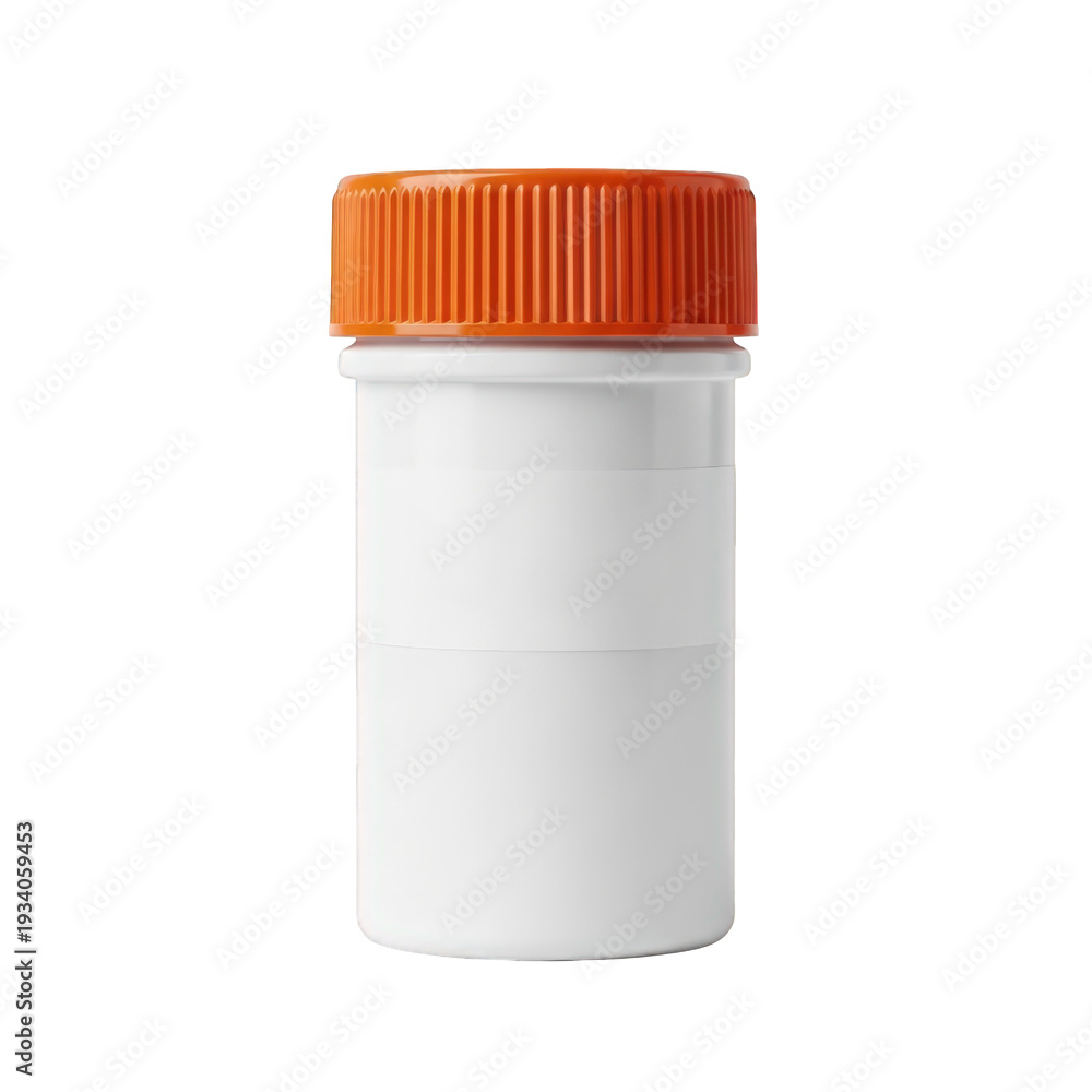 White plastic pill bottle with orange cap isolated on transparent background #1934059453