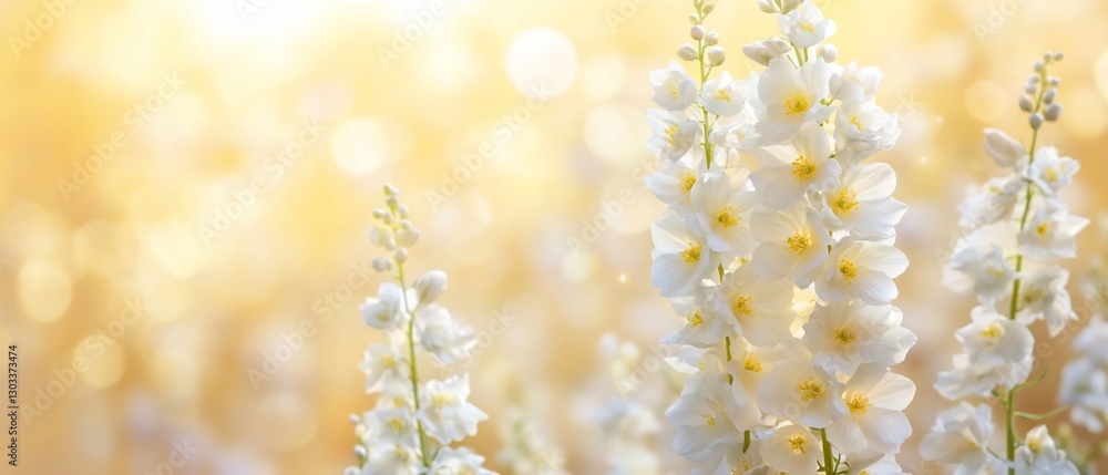 White snapdragons bloom in a dreamy meadow with bokeh background #1303373474