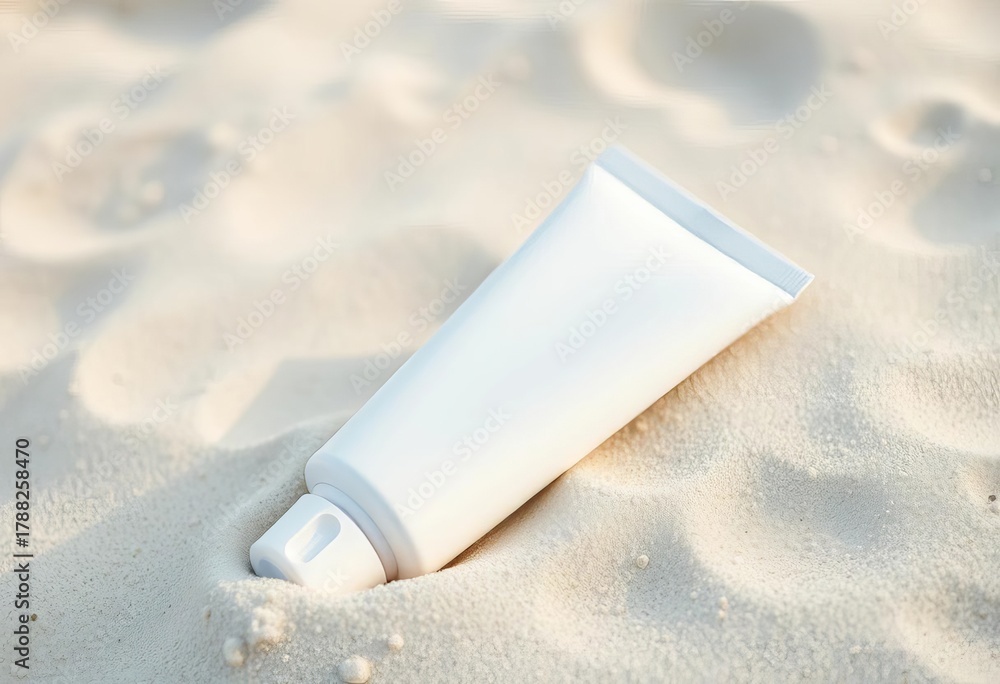 White sunscreen tube on beach sand background, lotion, tropical #1788258470