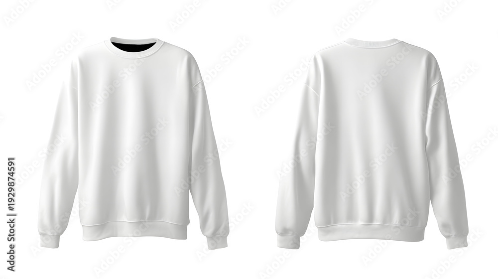 White sweatshirt flat lay mockup with front view and back view isolated on white background #1929874591
